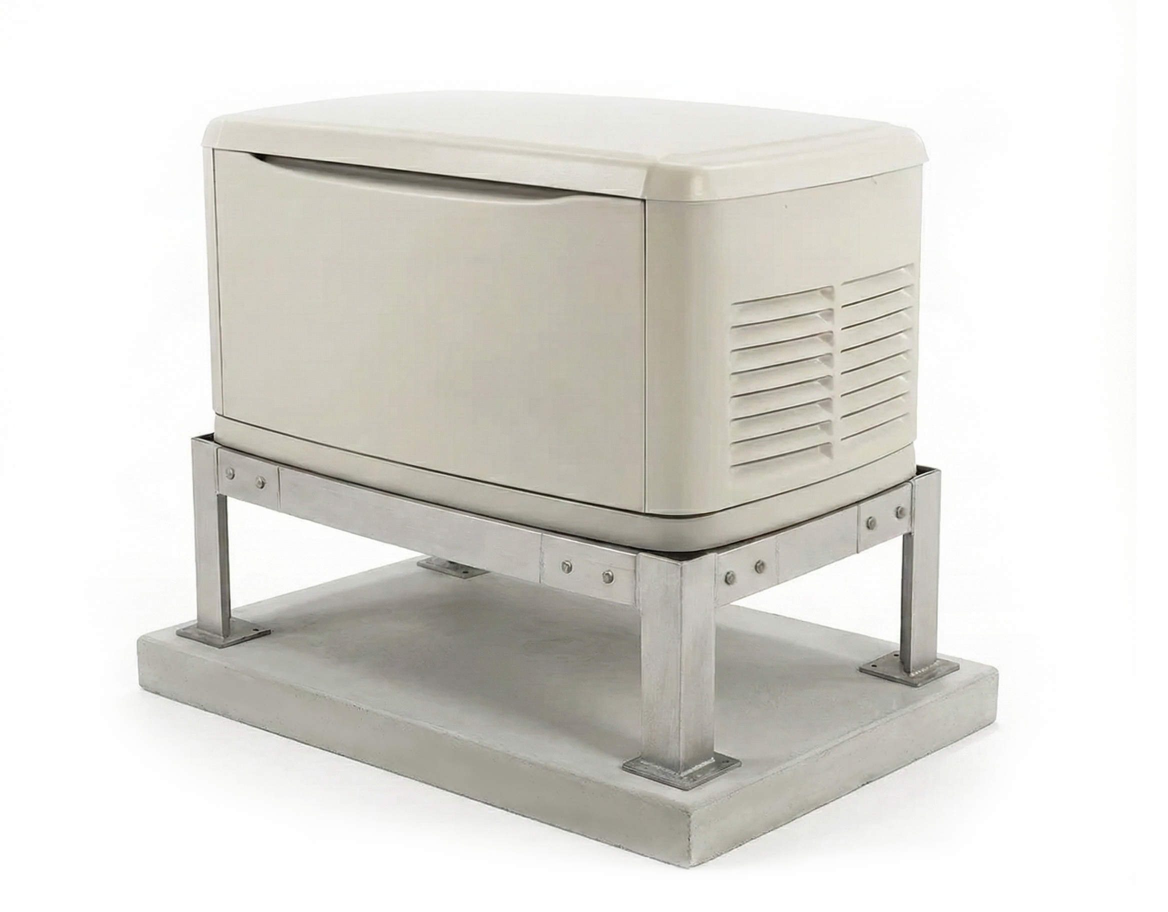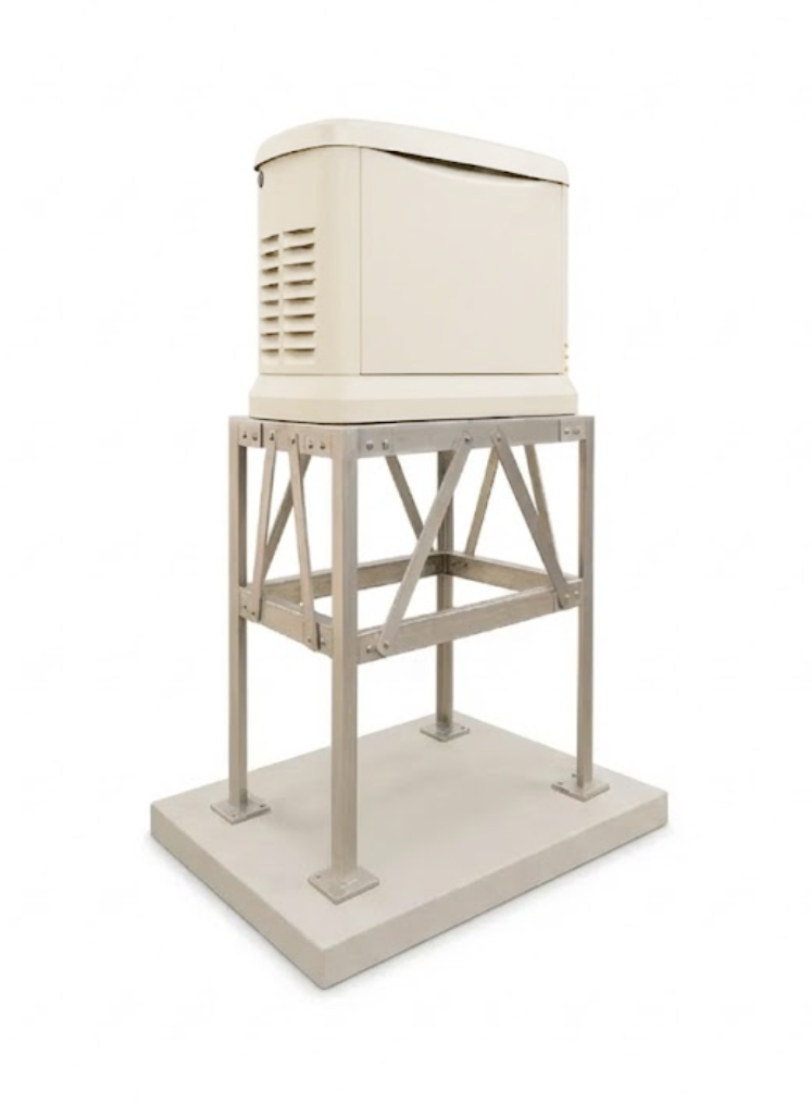 Aluminum Stand and PreCast pad combo. Engineered for Stability, 5,000 PSI strength, and fast, code-ready installation.